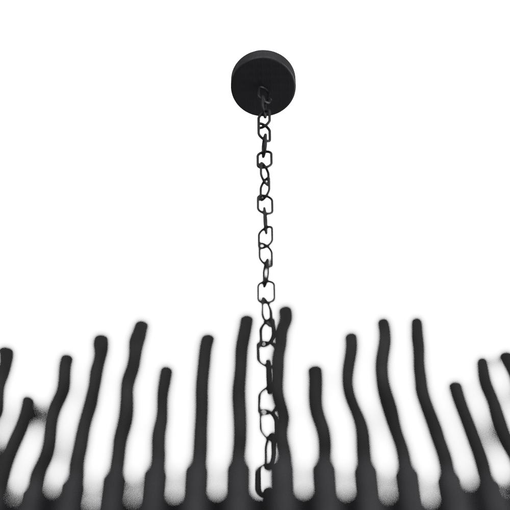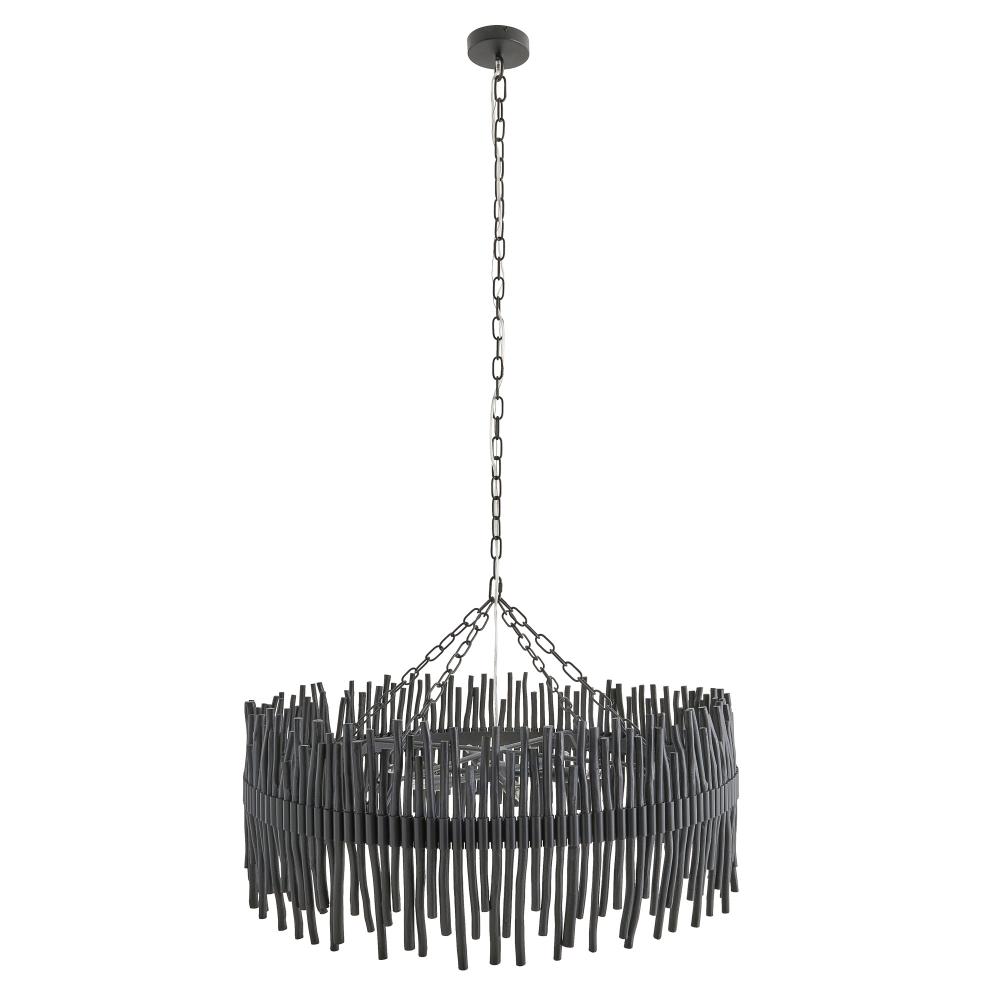 Naturally wonderful agarwood brings this organic chandelier to life. Black-stained for a neutral finish, randomly placed organic branches are constructed into a drum shape to please the eye. Suspended from a trio of blackened iron chains, the Adele is designed to reflect intriguing shadows on your walls and ceiling. Finish will vary.