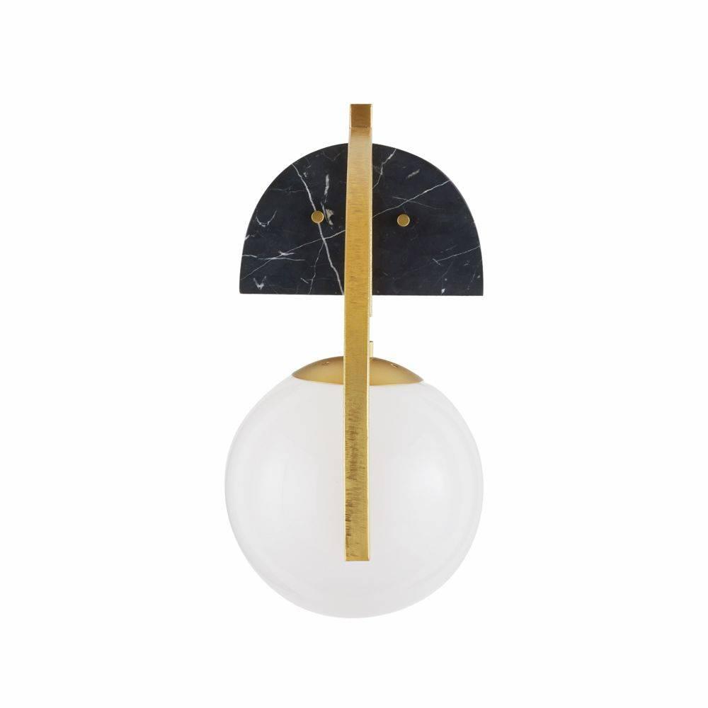 Sleek and sophisticated, this Deco-inspired light balances a backplate of black marble with a singular frosted opal glass globe. Suspended by glamorous chattered antique plated steel hardware, the Dipper is an elegant addition when staged on either side of a mirror. Finish will vary.