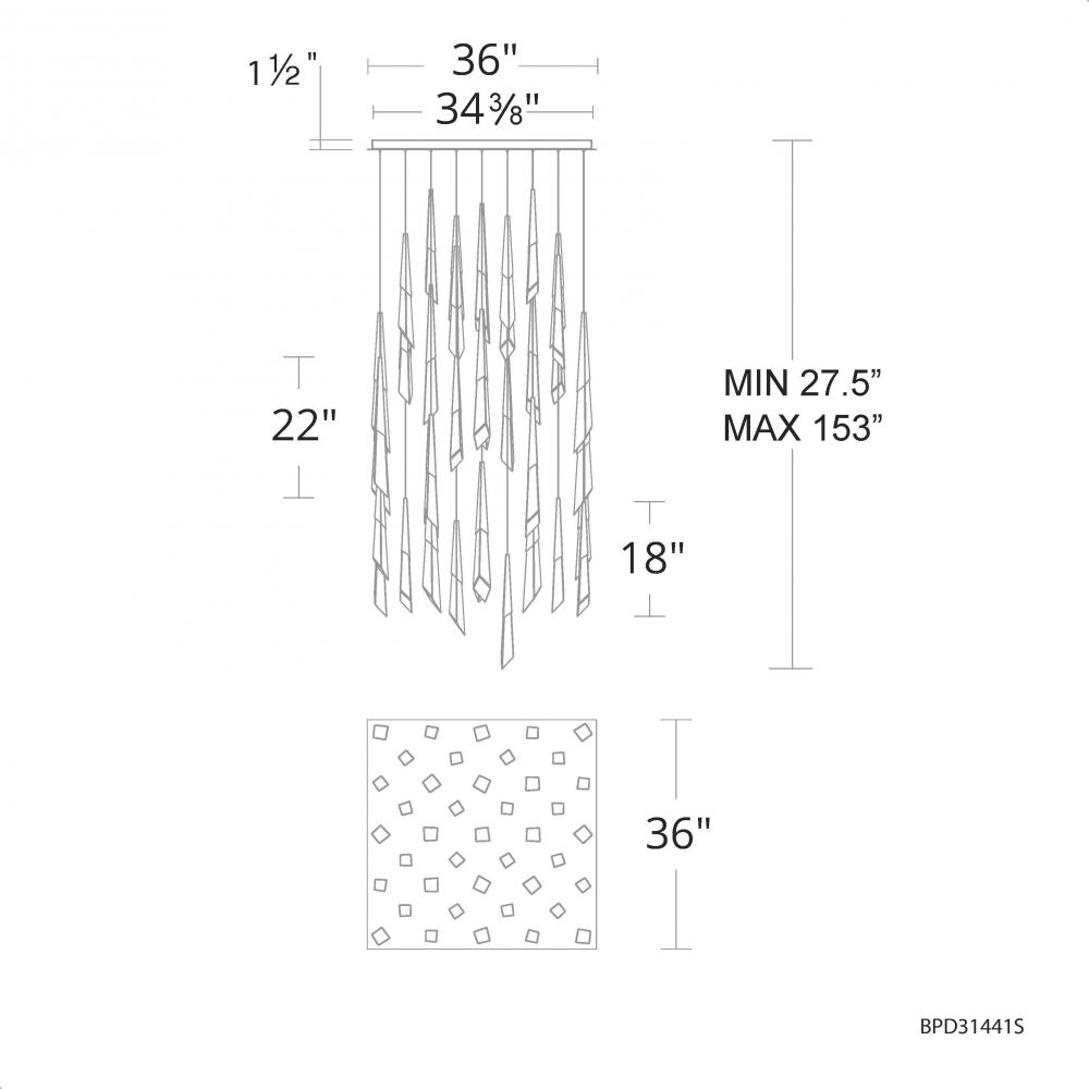 Solitude 41 Light 120-277V Multi-Light Pendant (Square Canopy) in Antique Nickel with Optic Haze Q