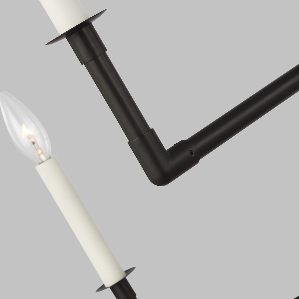 Chapman & Myers designed this modern series with sculptural sensibility, crafted of steel with white candle holders to complete the design. Bayview is available in Aged Iron or Polished Nickel finish and the assortment includes: medium, large and linear chandeliers, left and right sconces and a single sconce. Perfect for a dining area.