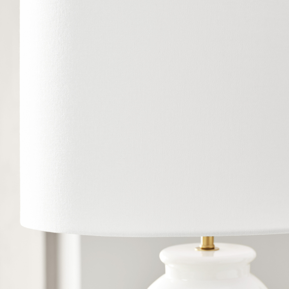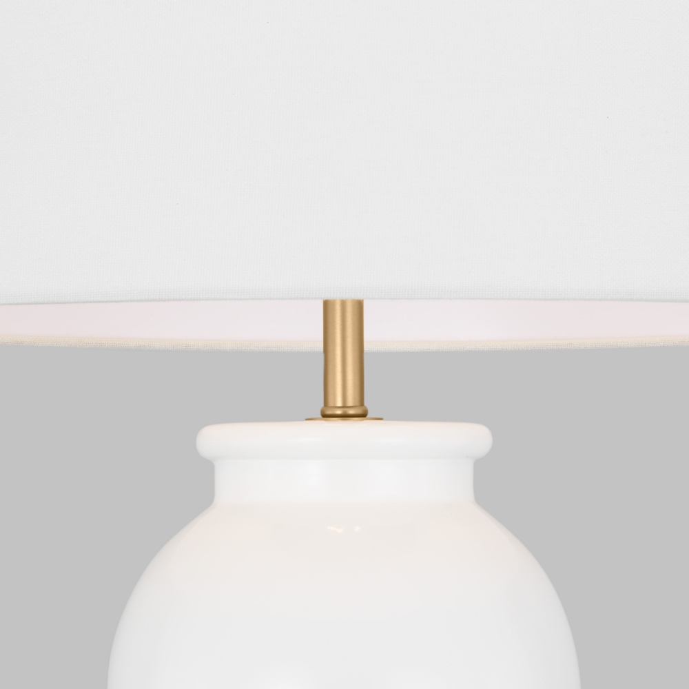 Designed by Drew & Jonathan Scott, Buckley is a classic gourd-style table lamp series in three saturated hues. Symmetrical lines give the traditional shape a modern look. Each is topped with a beautiful white linen shade; these table lamps are crafted of glass in three finishes that flow to the base.