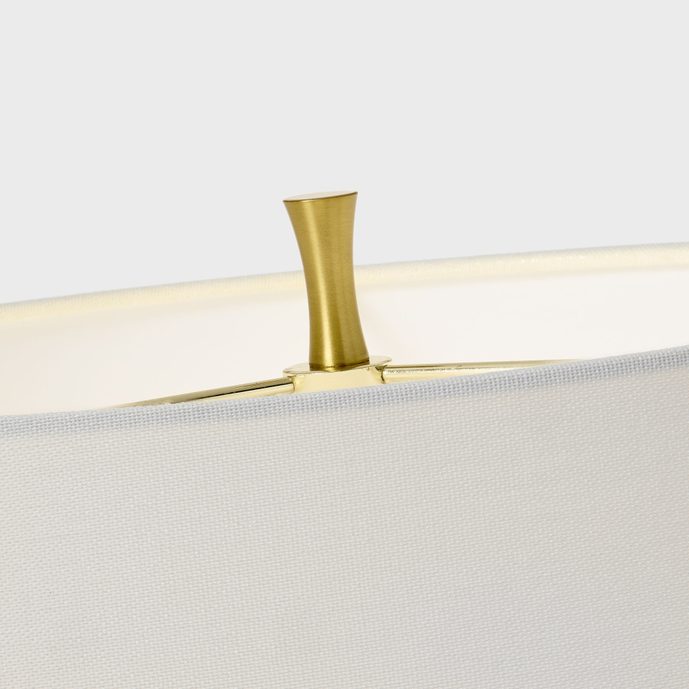Crafted with Ceramic in a Natural White finish with white linen fabric shade