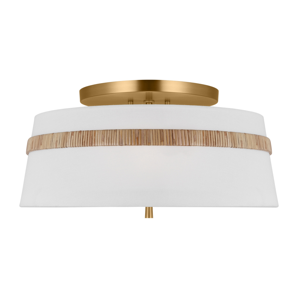 The Cordtlandt series by Alexa Hampton has a simple, purposeful design, making it a perfect addition to any uptown chic décor. The round-shaped flush mount features an etched glass diffuser and a decorative end stem that ties the look together. Updated with a rattan woven ring detail elevates the design with a coastal vibe.