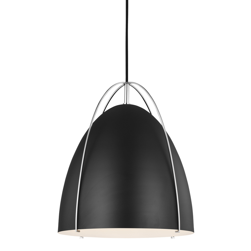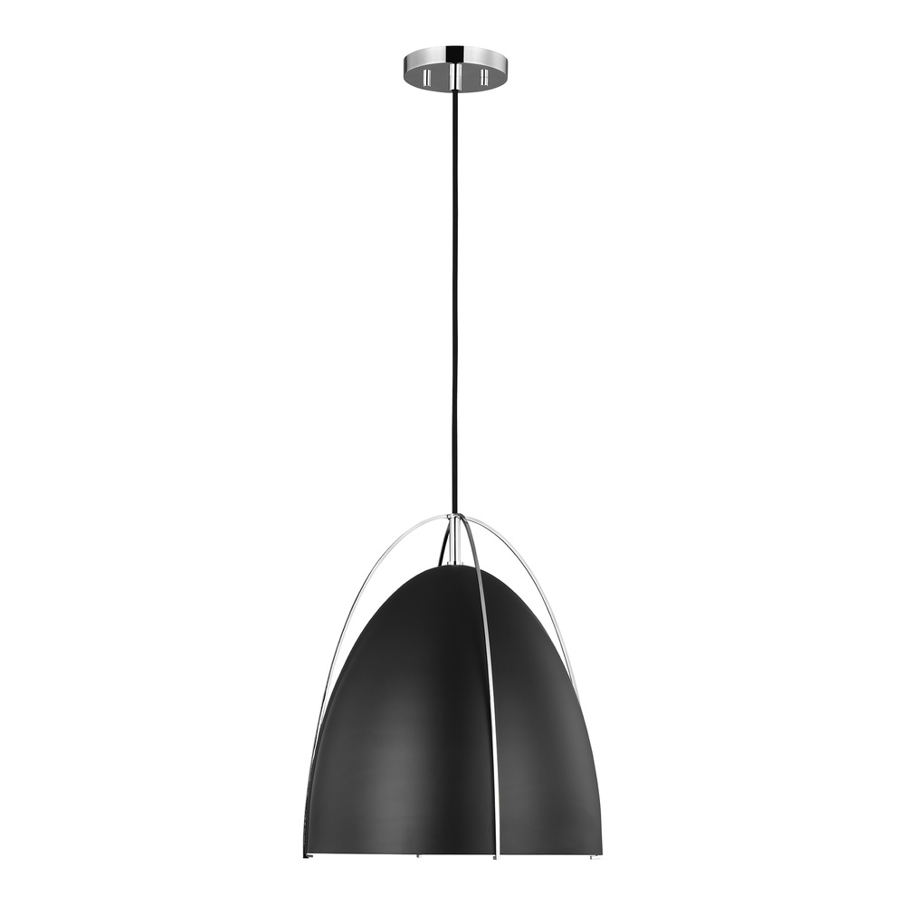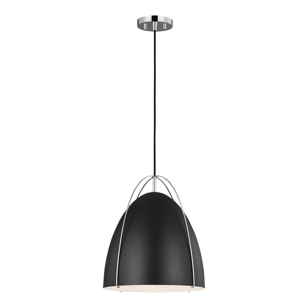 Contemporary, industrial fixture with sleek metal shade with complement any dining room, kitchen, or foyer