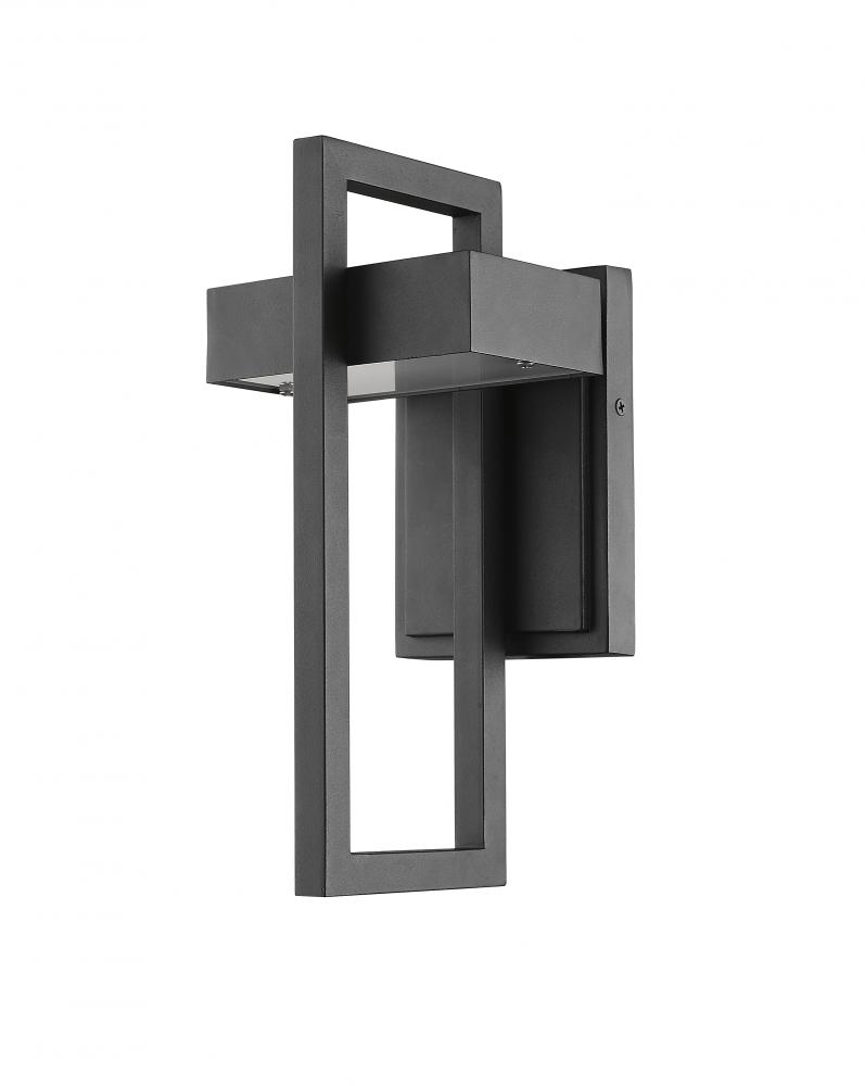 Spot lighting in an outdoor space just got a bit more creative. With an angular, modern silhouette, this black aluminum one-light wall sconce features a beautiful frosted glass shade and delivers energy-saving integrated LED lighting.